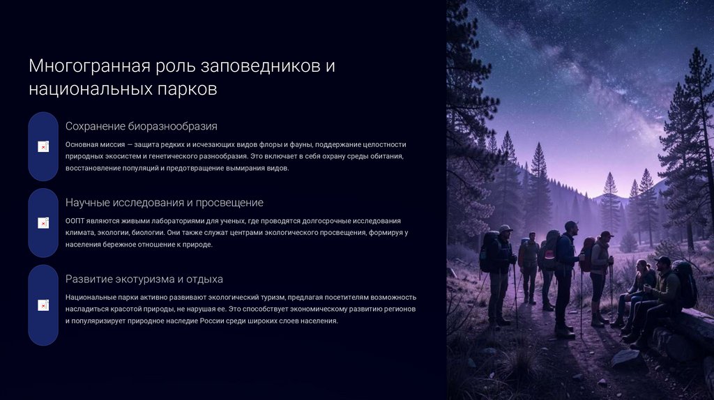 просвещения и сохранения культурного наследия. Они предоставляют уникальную возможность познакомиться с природой, не нанося ей