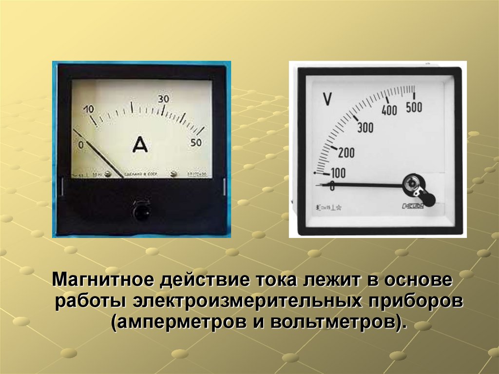 Магнитное действие тока лежит в основеработы электроизмерительных приборов