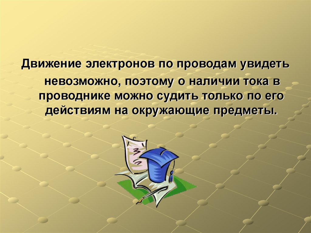 Движение электронов по проводам увидетьневозможно, поэтому о наличии тока в