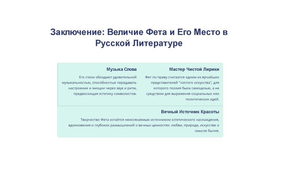 Заключение: Величие Фета и Его Место вРусской Литературе