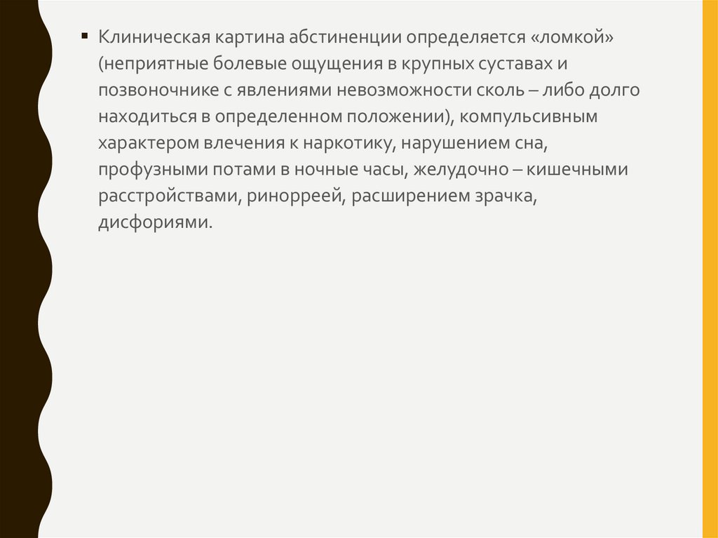 НАРКОМАНИЯ• Хроническое, прогредиентное, экзогенно – органическое