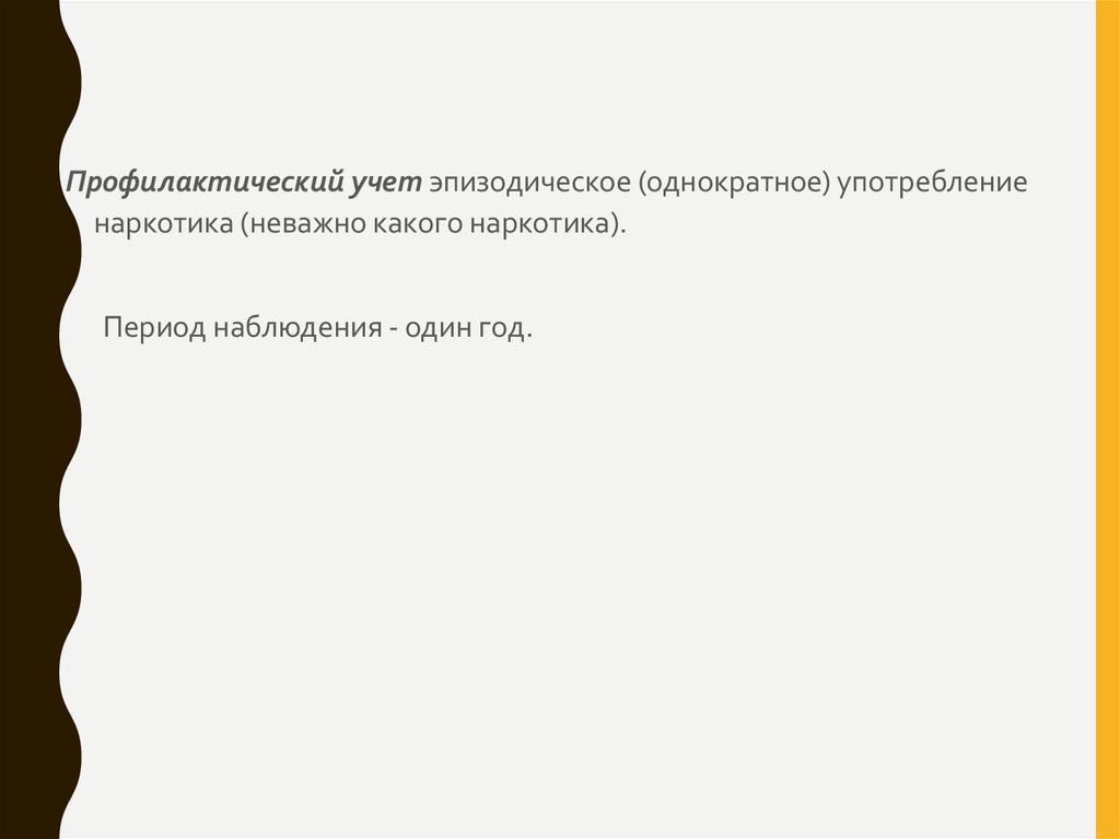 Профилактический учет эпизодическое (однократное) употреблениенаркотика (неважно какого наркотика).