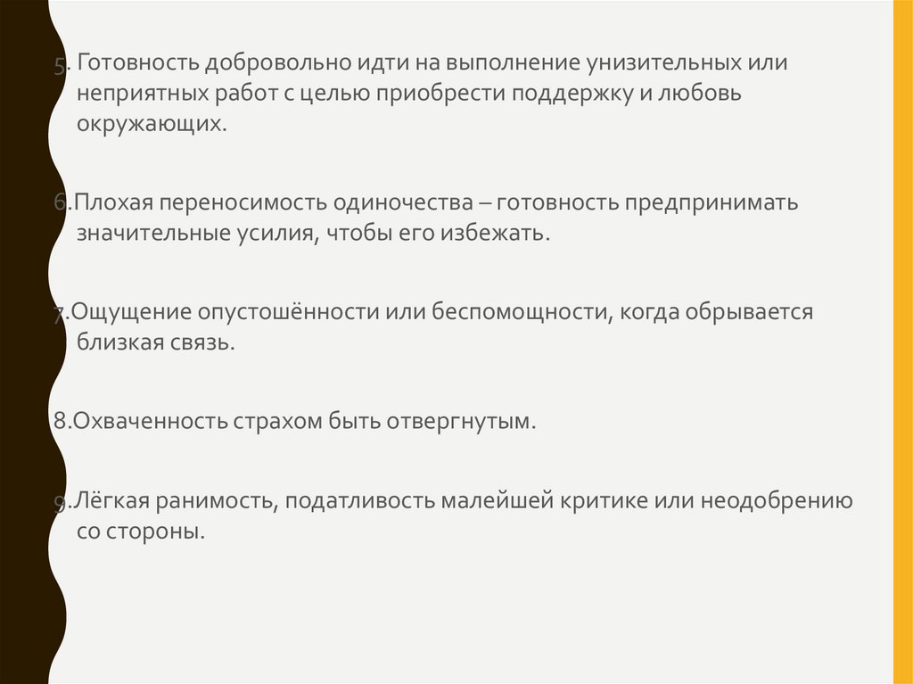 5. Готовность добровольно идти на выполнение унизительных илинеприятных работ с целью приобрести поддержку и любовь