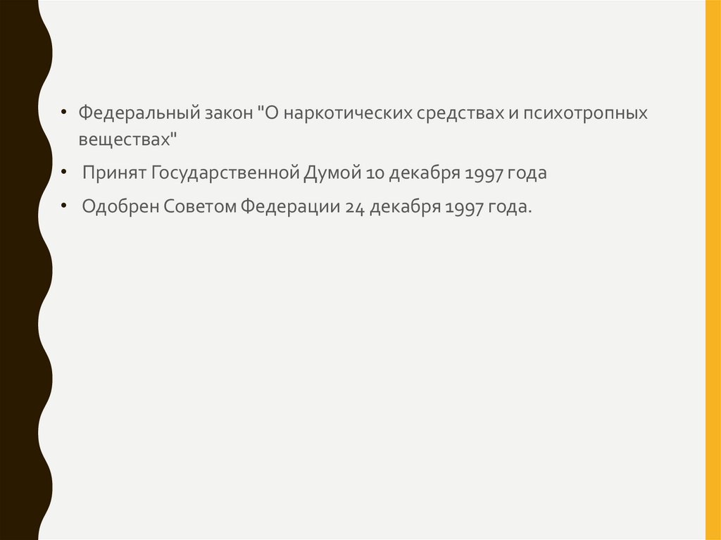 • Федеральный закон "О наркотических средствах и психотропныхвеществах"