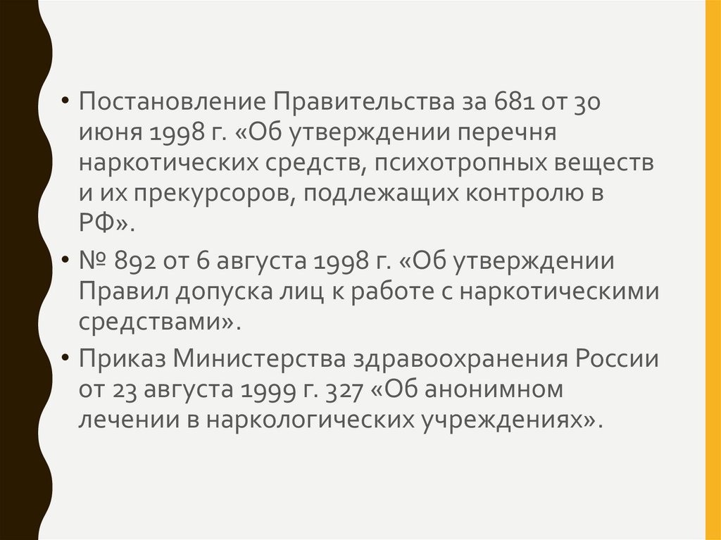 • Постановление Правительства за 681 от 30июня 1998 г. «Об утверждении перечня