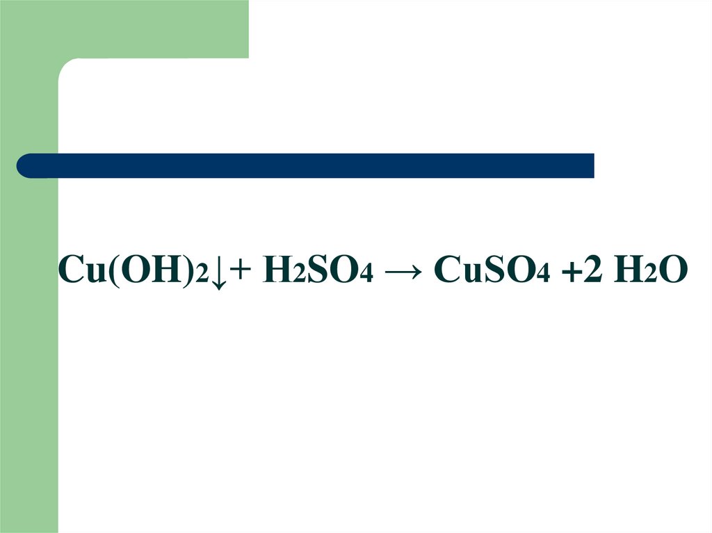 Cu(OH)2↓+ H2SO4 → CuSO4 +2 H2O19. ХИМИЧЕСКИЕ СВОЙСТВА ОСНОВАНИЙ