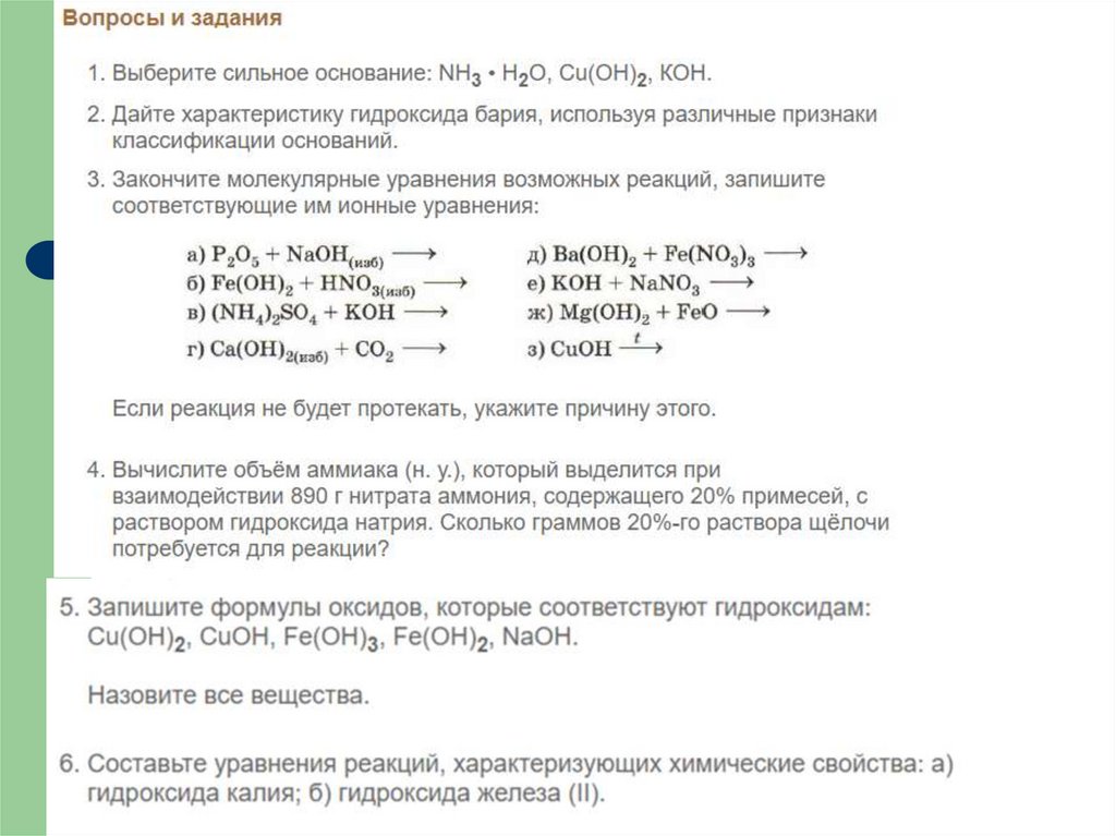 21. ХИМИЧЕСКИЕ СВОЙСТВА ОСНОВАНИЙ