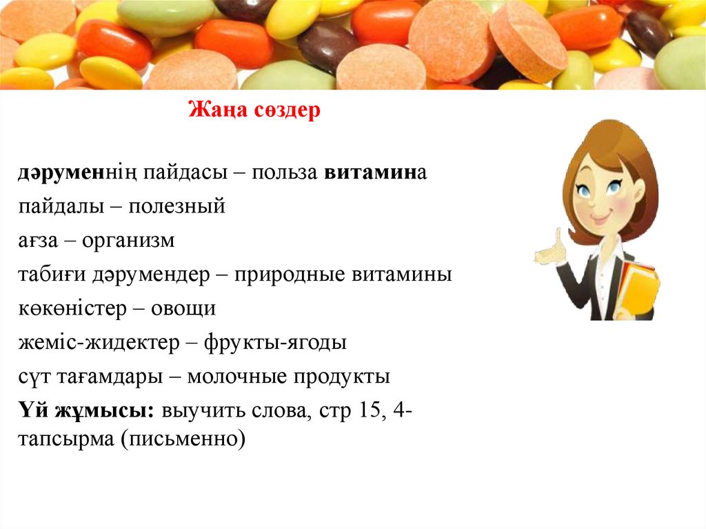 Жаңа сөздердәруменнің пайдасы – польза витамина