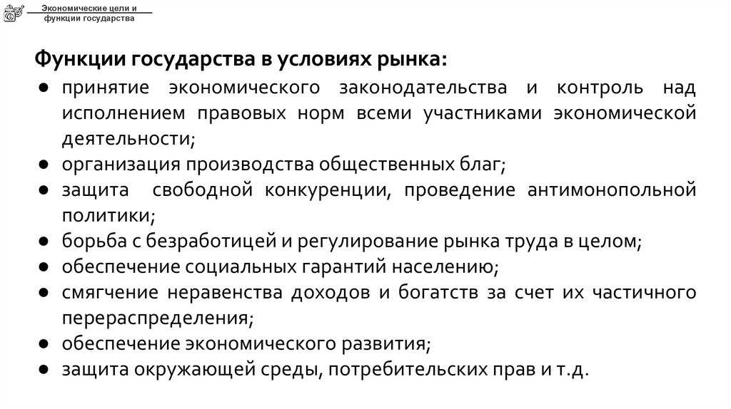 Экономические цели ифункции государства