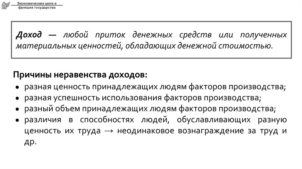Причины неравенства доходов: