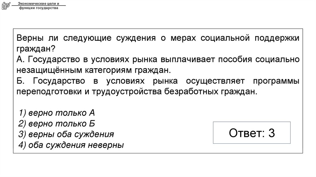 экономики 3) социальное обеспечение