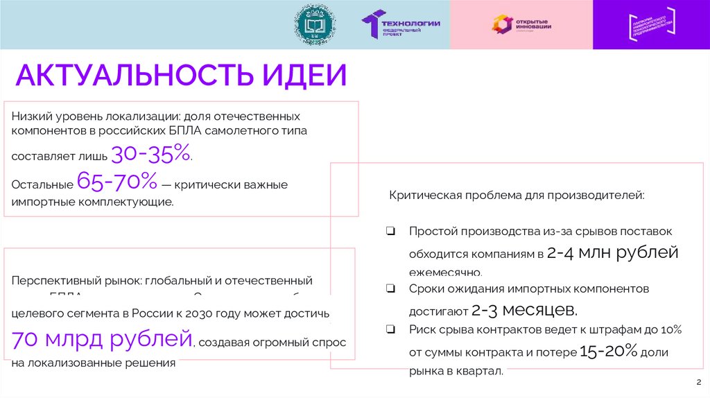 АКТУАЛЬНОСТЬ ИДЕИНизкий уровень локализации: доля отечественных