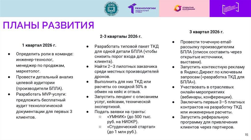 ПЛАНЫ РАЗВИТИЯ3 квартал 2026 г.