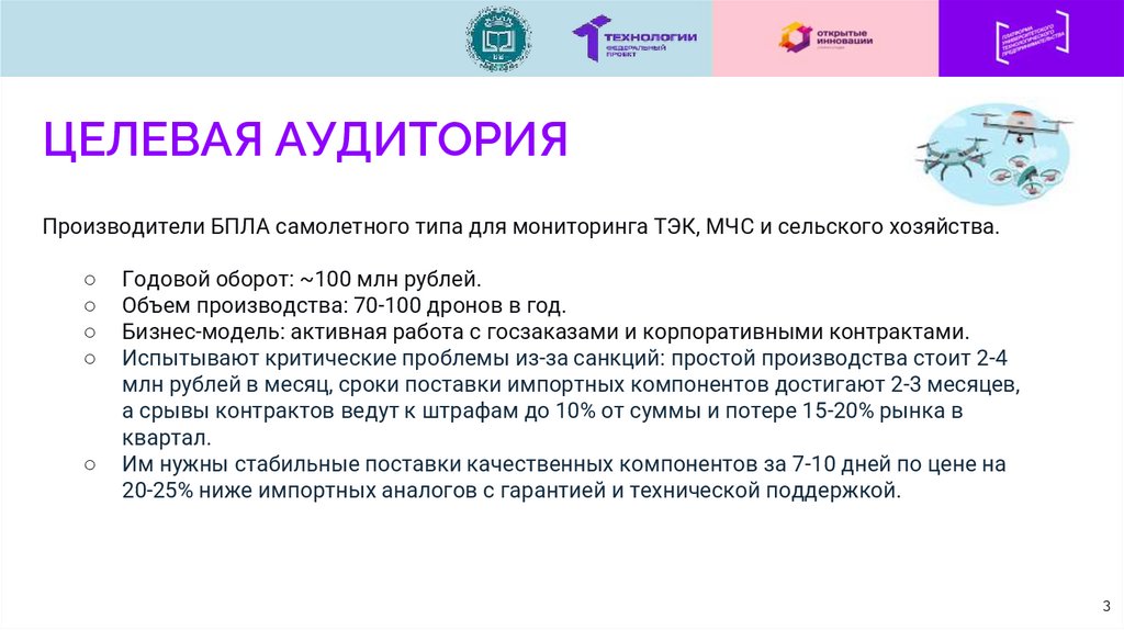 ЦЕЛЕВАЯ АУДИТОРИЯПроизводители БПЛА самолетного типа для мониторинга ТЭК, МЧС и сельского хозяйства.