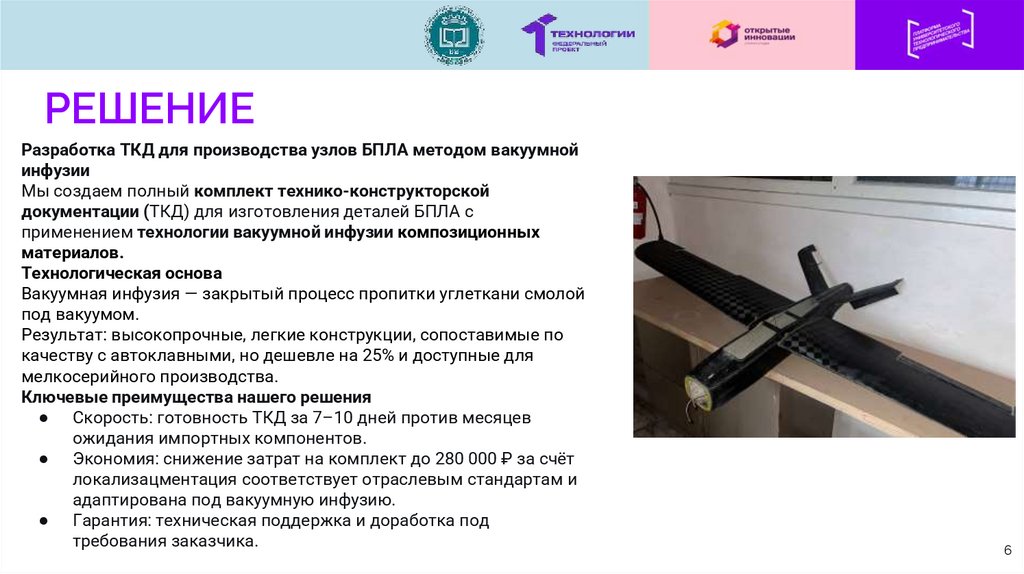 РЕШЕНИЕРазработка ТКД для производства узлов БПЛА методом вакуумной