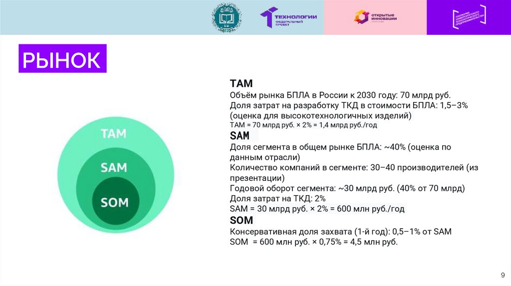 TAM = 70 млрд руб. × 2% = 1,4 млрд руб./год