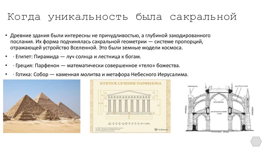 Когда уникальность была сакральной• Древние здания были интересны не причудливостью, а глубиной закодированного