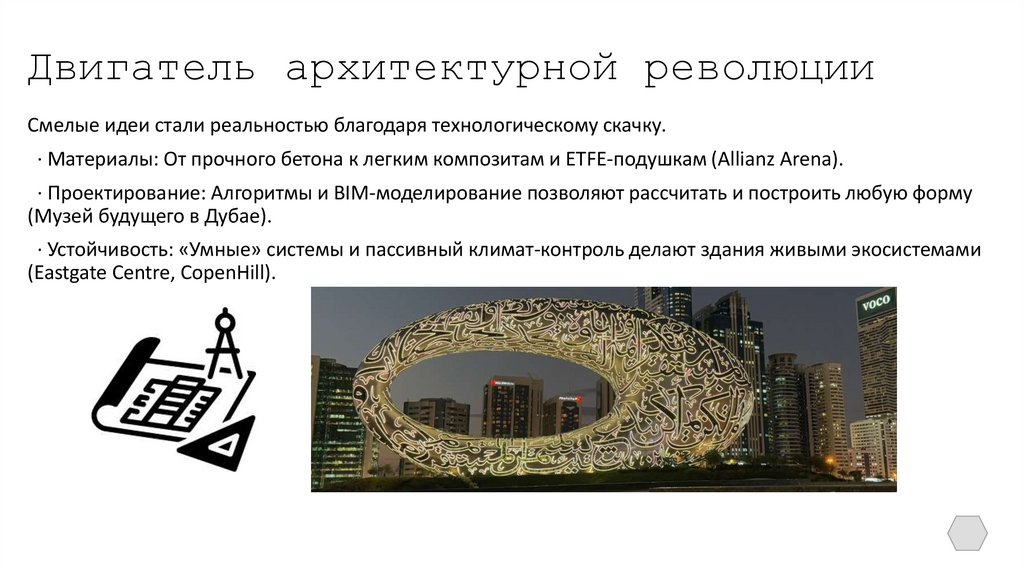 Двигатель архитектурной революцииСмелые идеи стали реальностью благодаря технологическому скачку.