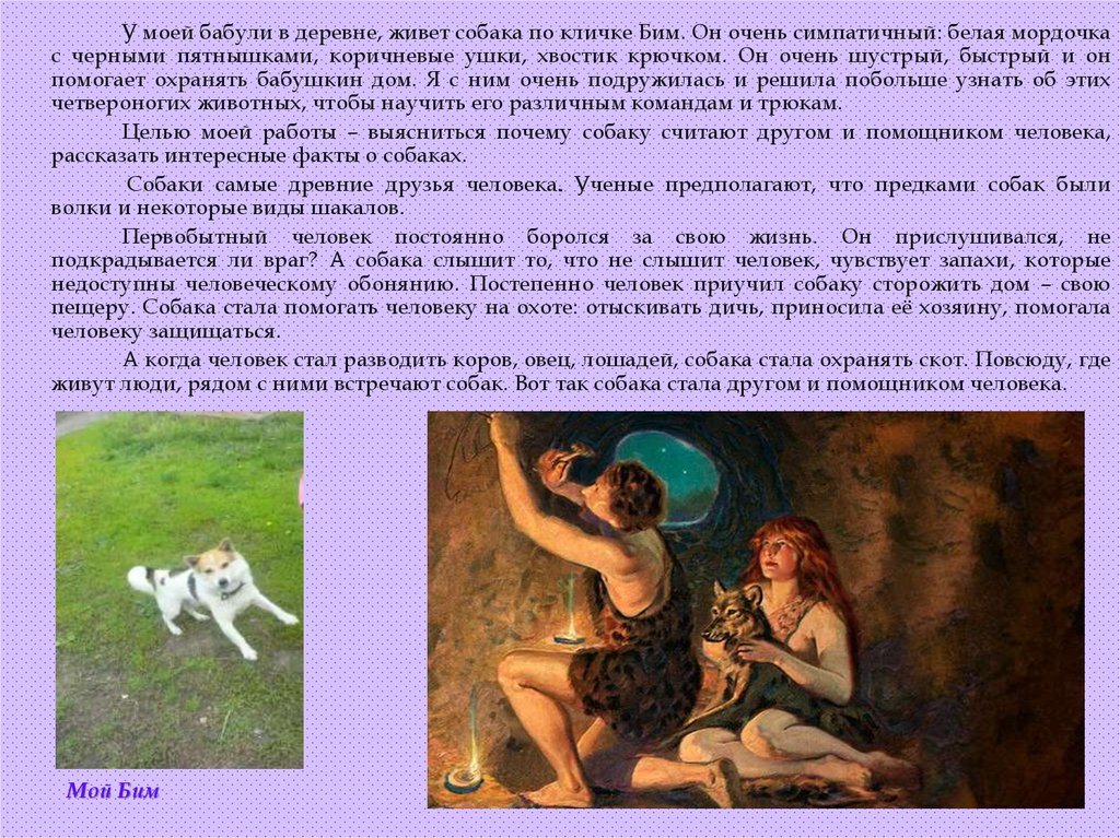 живут люди, рядом с ними встречают собак. Вот так собака стала другом и помощником человека.