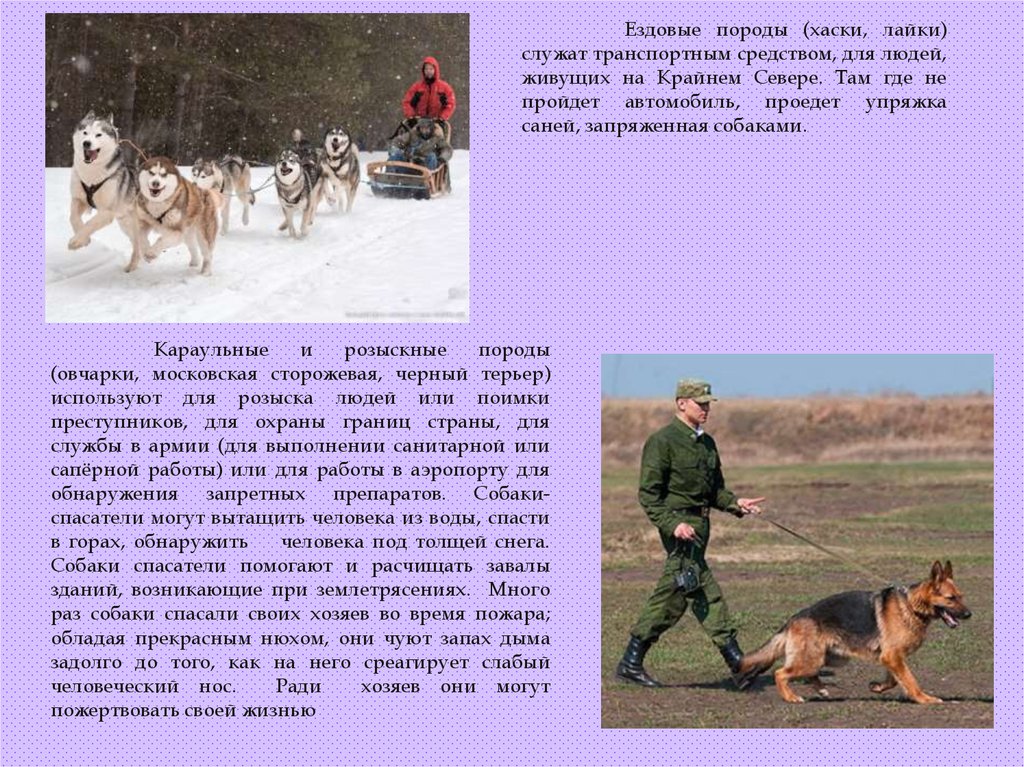 Ездовые породы (хаски, лайки)служат транспортным средством, для людей,