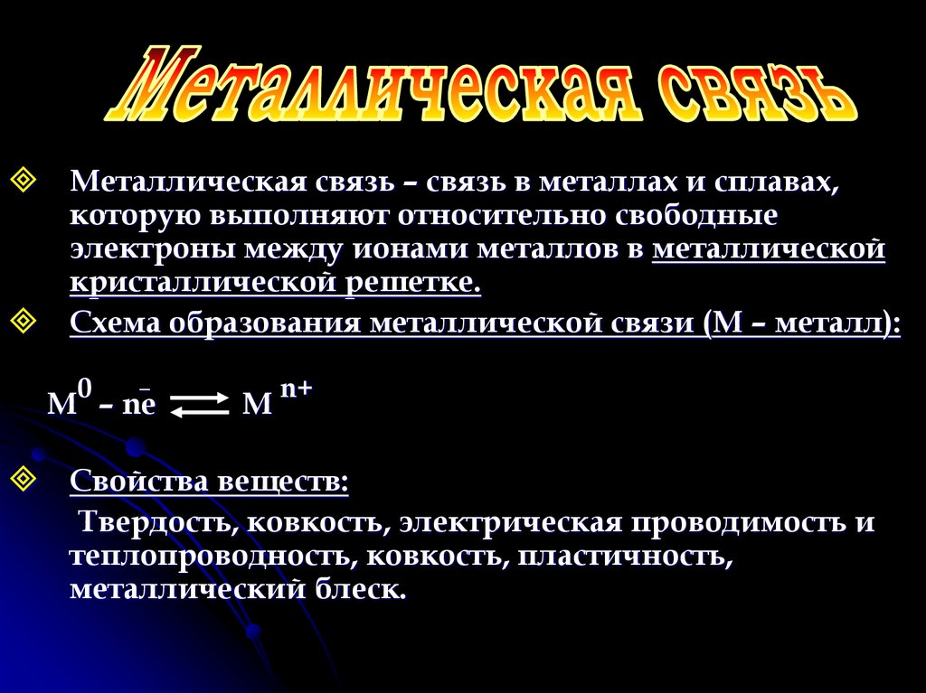 Схема образования металлической связи (М – металл):