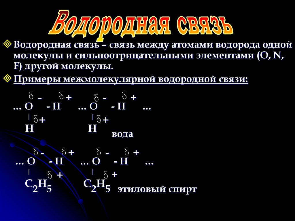 водородные соединения F, O, N (реже Cl