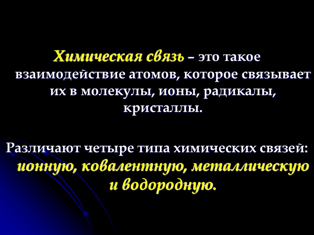 Химическая связь – это такоевзаимодействие атомов, которое связывает