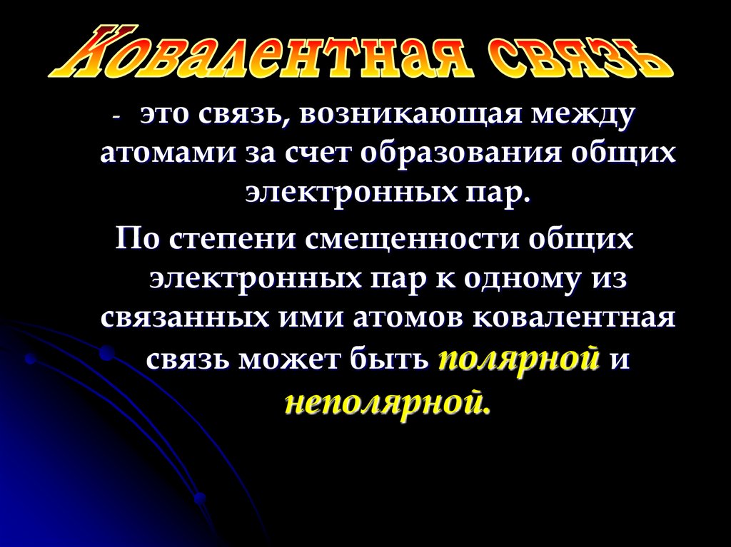 это связь, возникающая междуатомами за счет образования общих