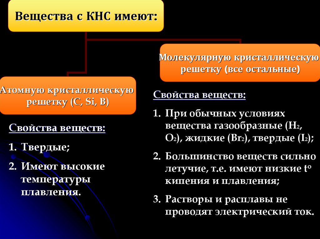 Вещества с КНС имеют:Молекулярную кристаллическую