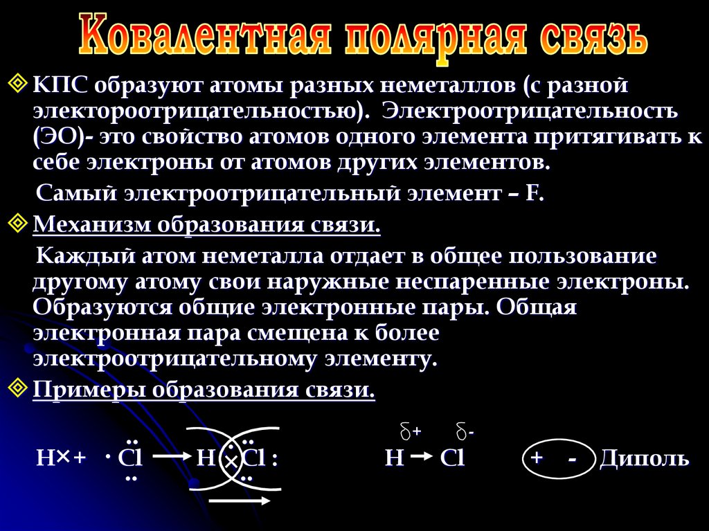 КПС образуют атомы разных неметаллов (с разнойэлектороотрицательностью). Электроотрицательность