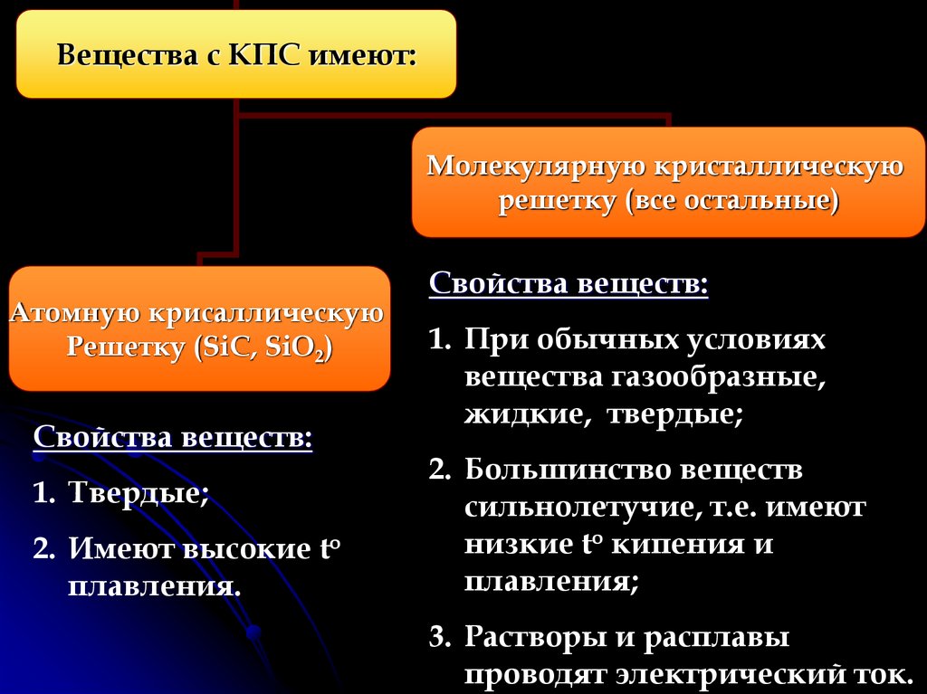 Вещества с КПС имеют:Молекулярную кристаллическую