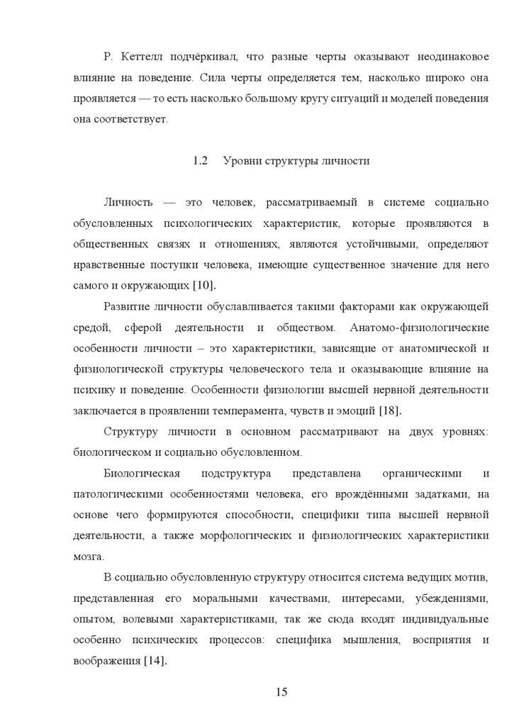 1.2 Уровни структуры личности………………………………………………. 15