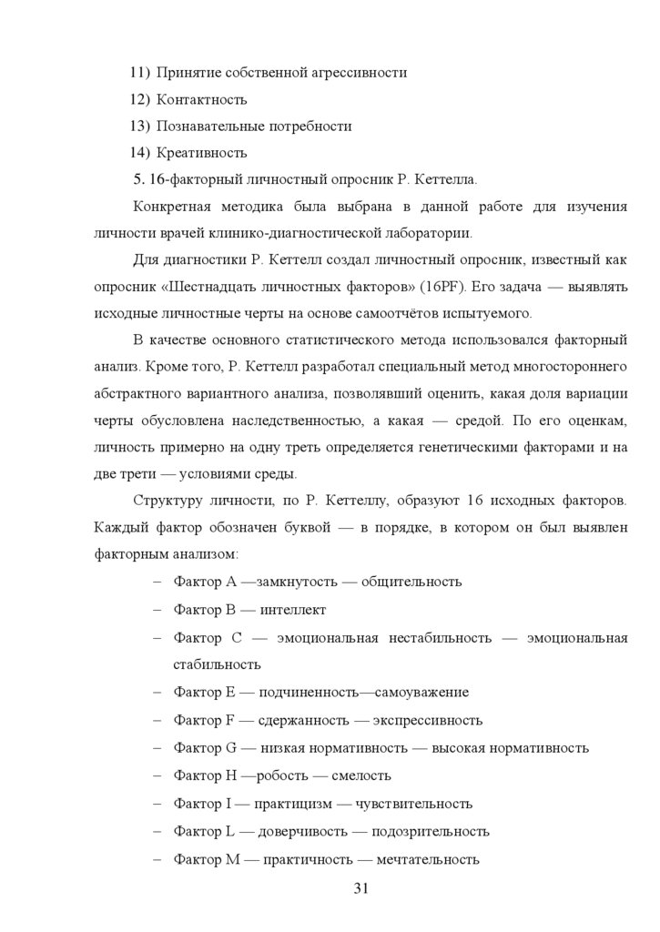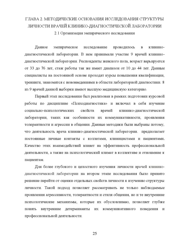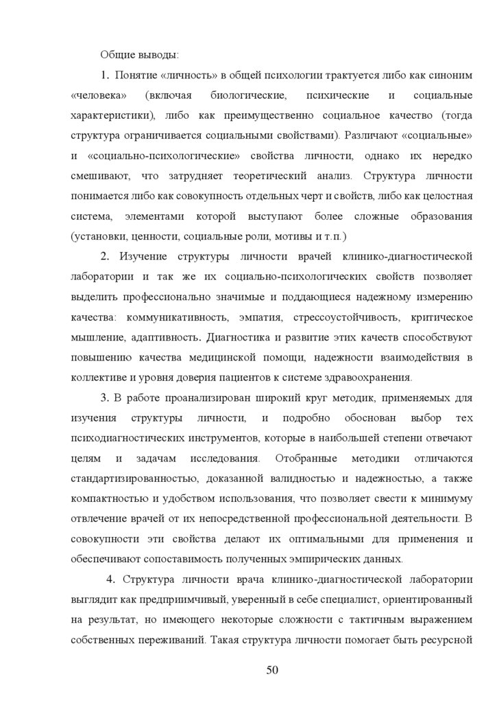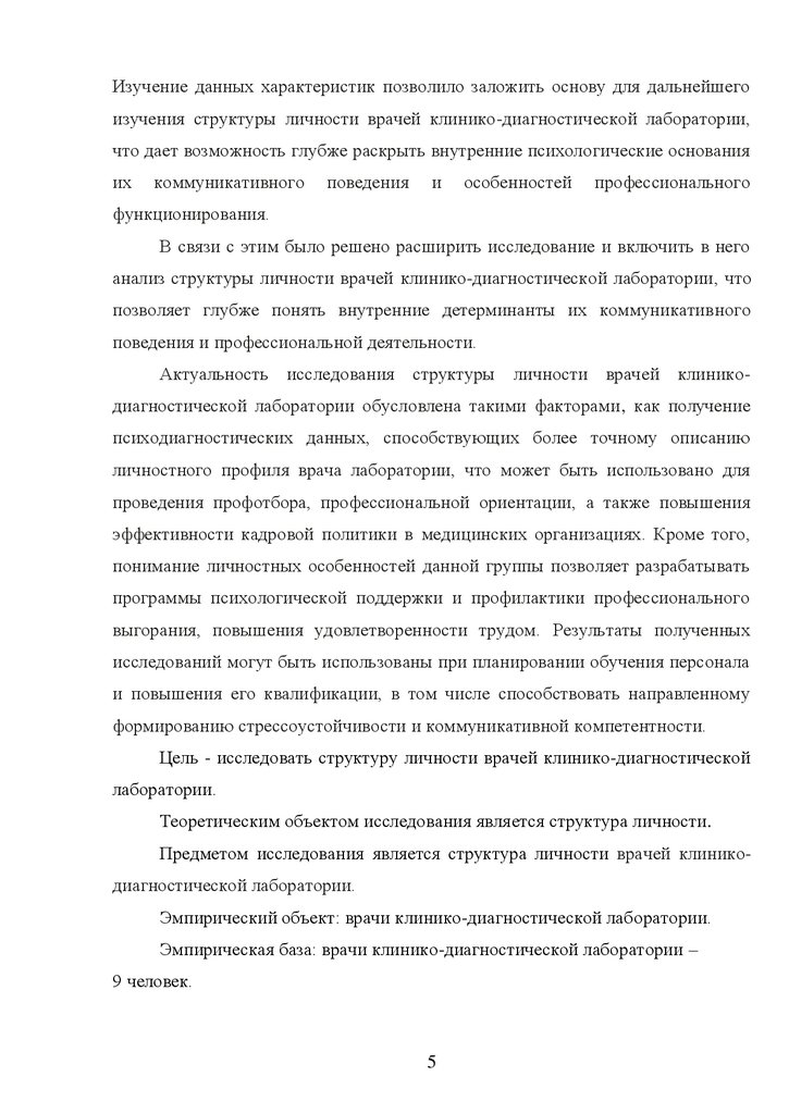 СТРУКТУРА ЛИЧНОСТИ ВРАЧЕЙ КЛИНИКО-ДИАГНОСТИЧЕСКОЙ
