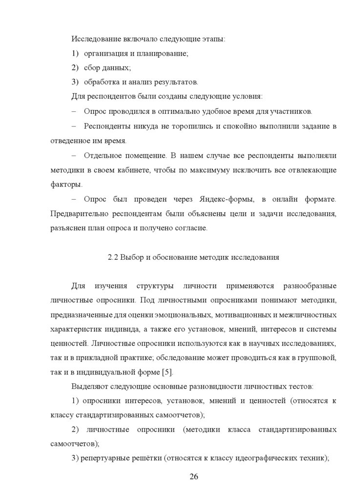 2.2 Выбор и обоснование методик исследования…………………………..... 26