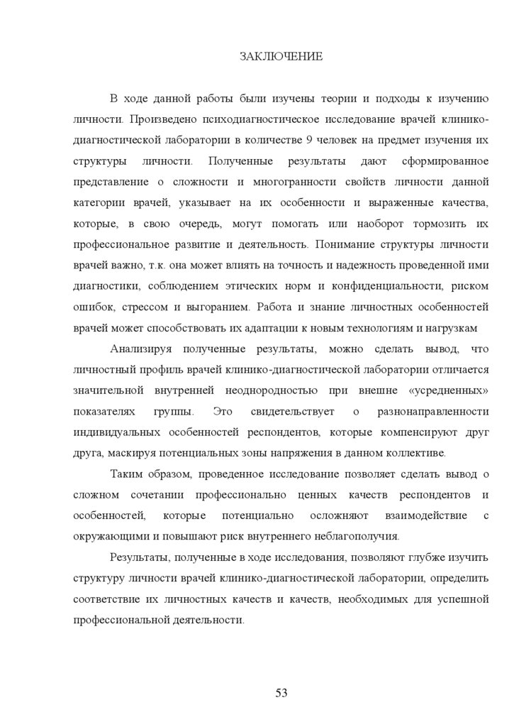СТРУКТУРЫ ЛИЧНОСТИ ВРАЧЕЙ КЛИНИКО-ДИАГНОСТИЧЕСКОЙ