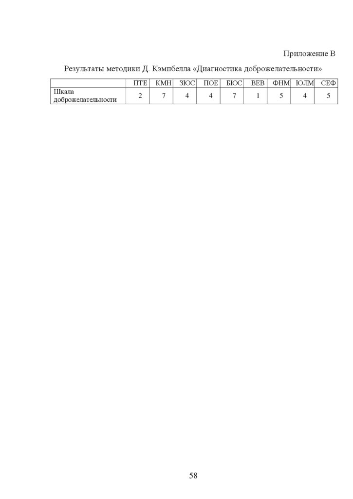 Приложение ВРезультаты методики Д. Кэмпбелла «Диагностика доброжелательности»