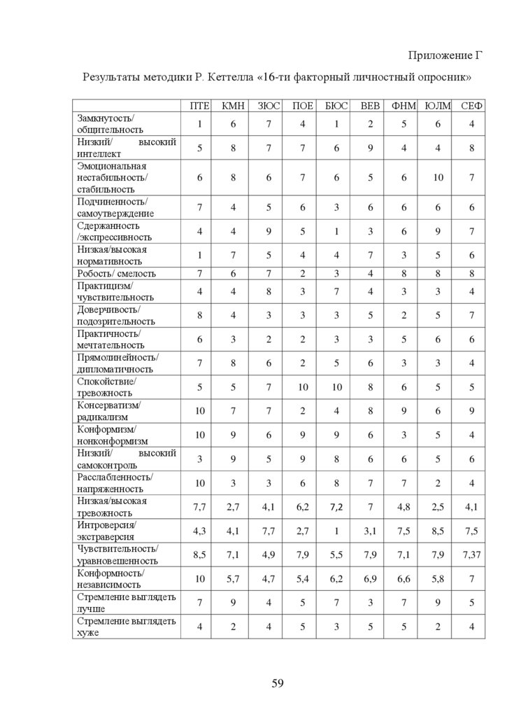 Приложение ГРезультаты методики Р. Кеттелла «16-ти факторный личностный опросник»