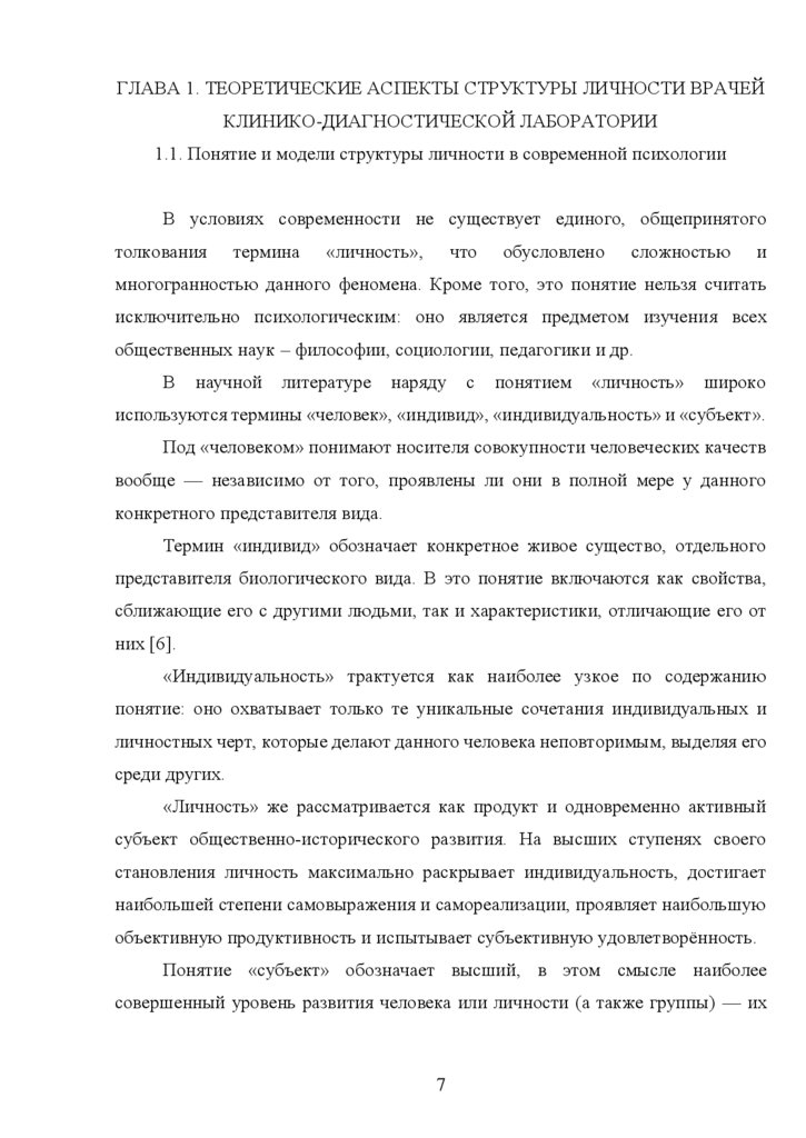 1.1 Понятие и модели структуры личности в современной психологии …... 7
