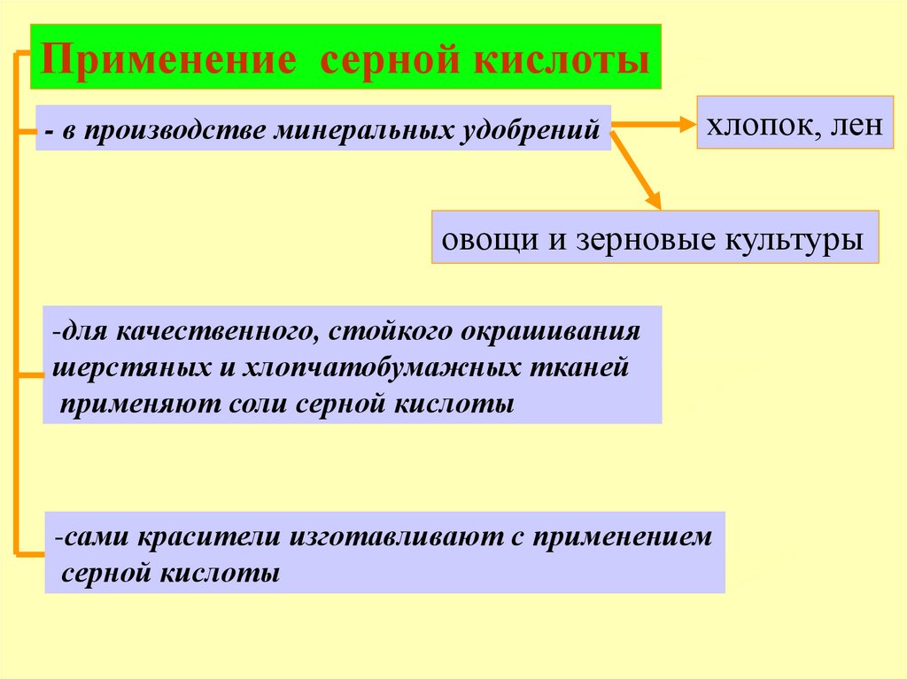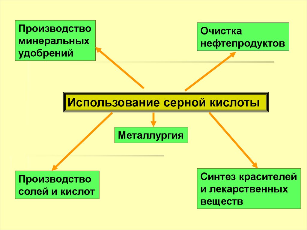 1. Производство минеральных удобрений.2. Производство сульфатов (солей серной кислоты).