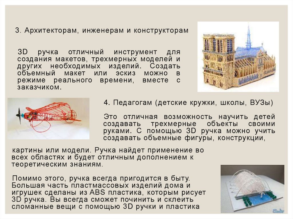 3. Архитекторам, инженерам и конструкторам3D ручка отличный инструмент для
