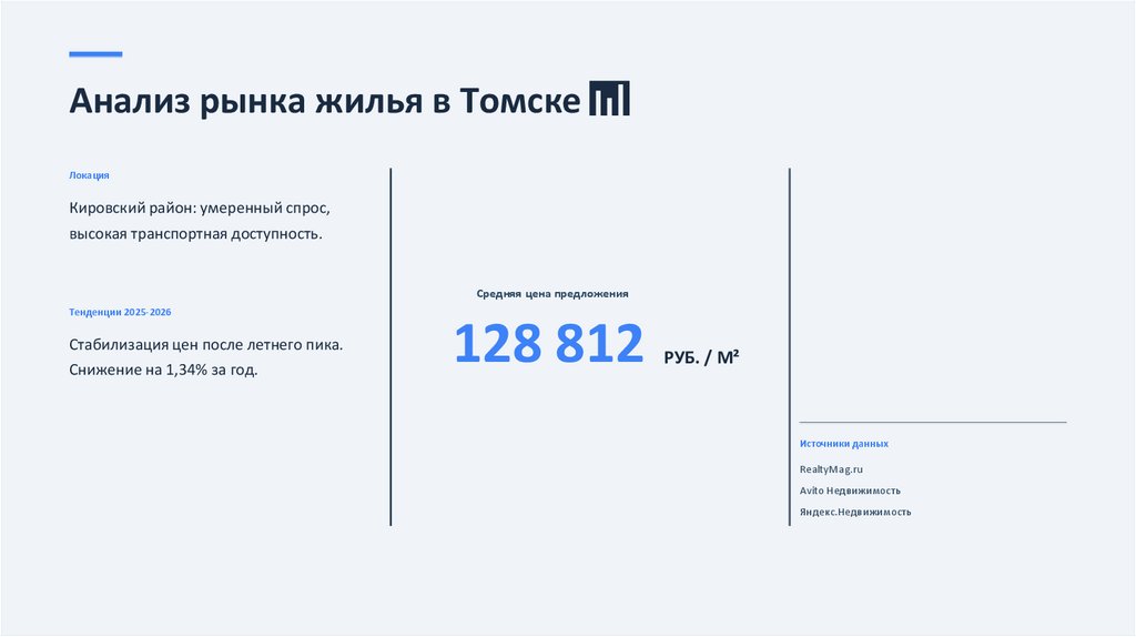 → Провести анализ рынка жилой недвижимости г. Томска (2025–2026 гг.).