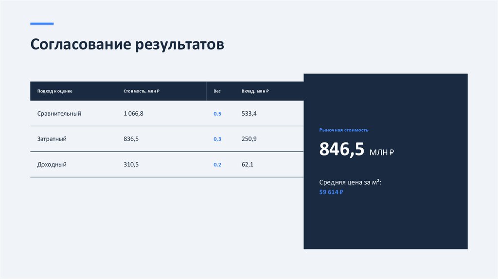 → Согласовать результаты и вывести итоговую стоимость.