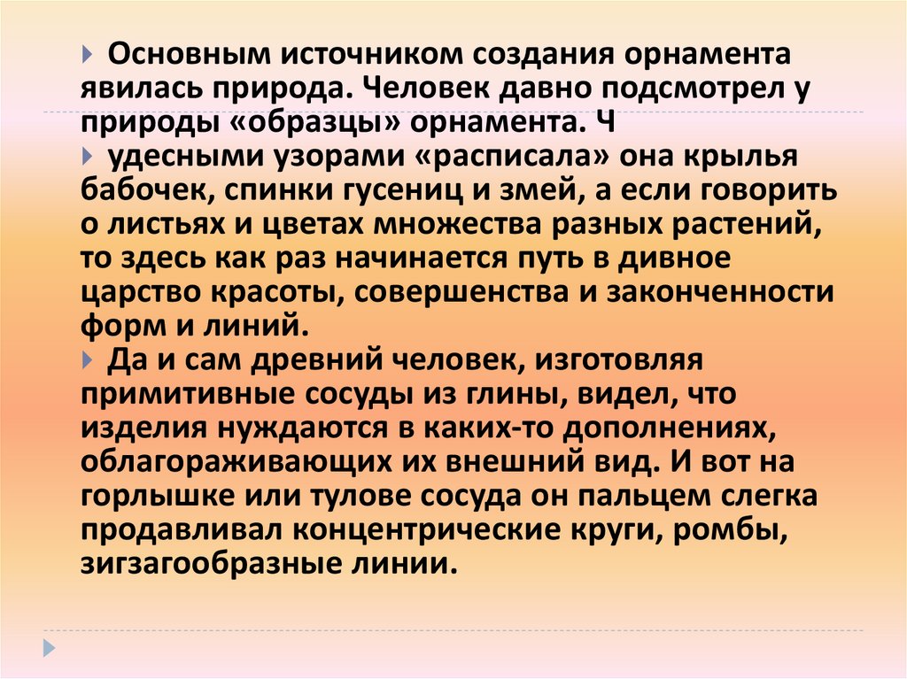 Основным источником создания орнаментаявилась природа. Человек давно подсмотрел у