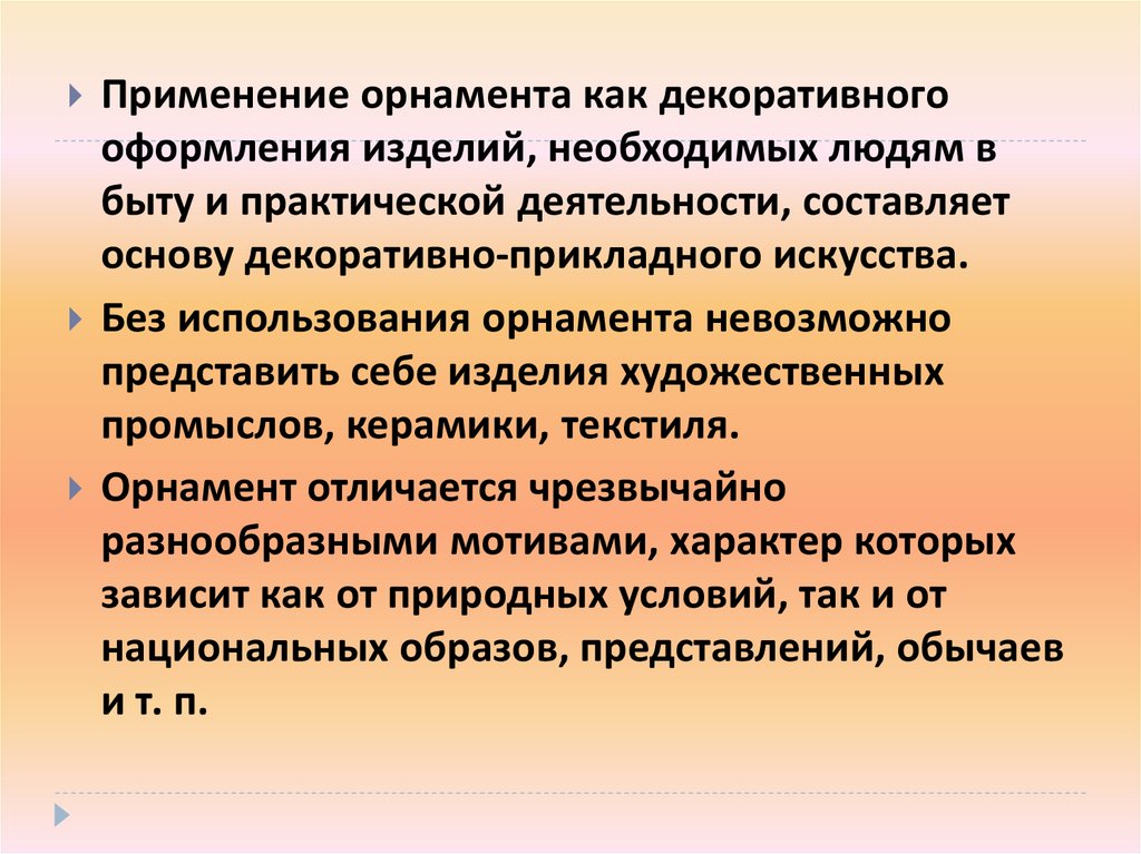 Применение орнамента как декоративногооформления изделий, необходимых людям в