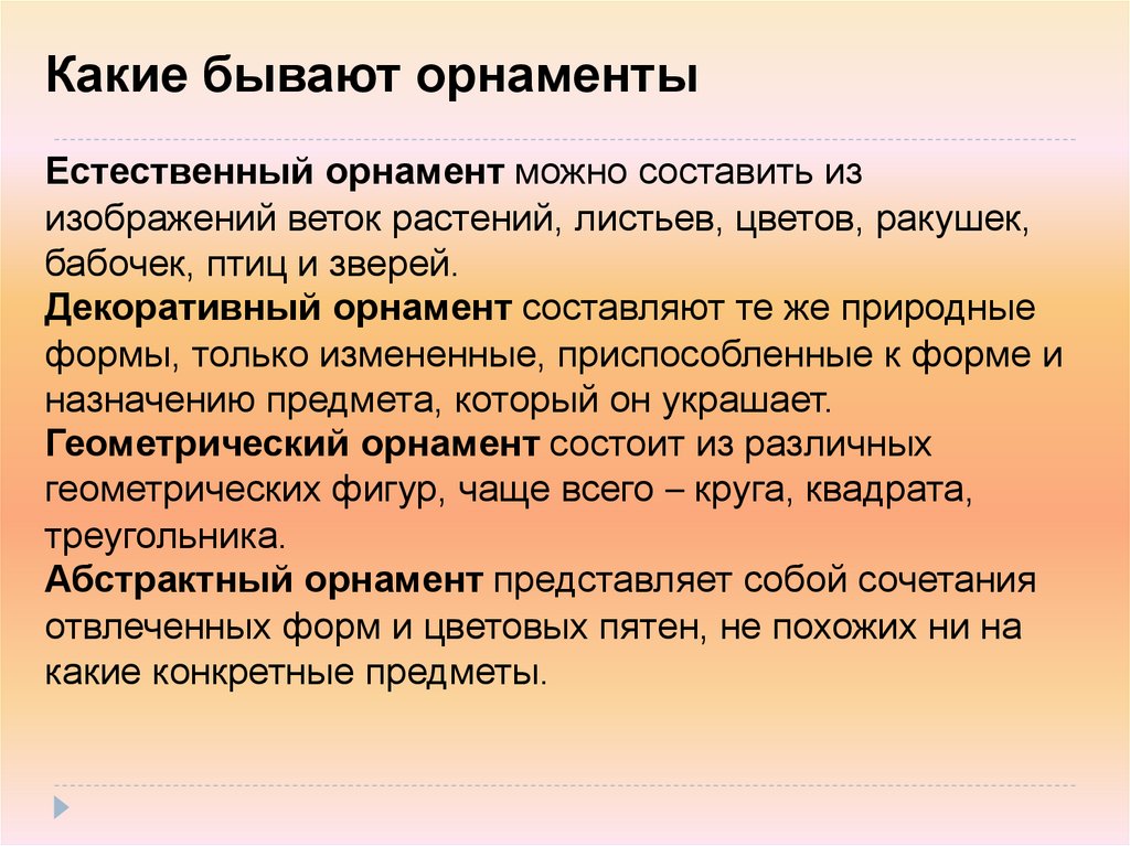 Какие бывают орнаментыЕстественный орнамент можно составить из