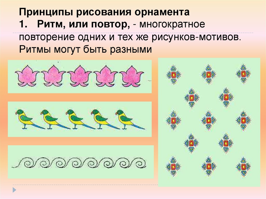 Принципы рисования орнамента1. Ритм, или повтор, - многократное