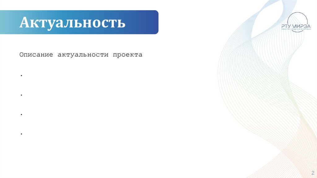 АктуальностьОписание актуальности проекта