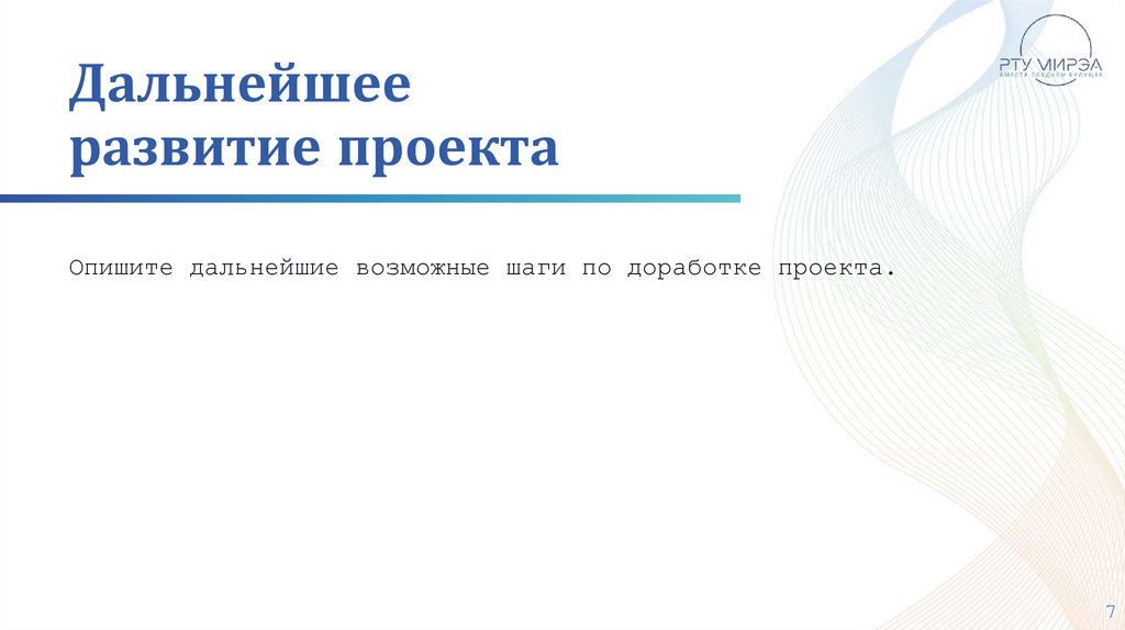 Дальнейшееразвитие проекта
