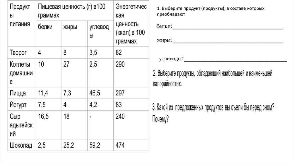 1. Выберите продукт (продукты), в составе которыхпреобладают