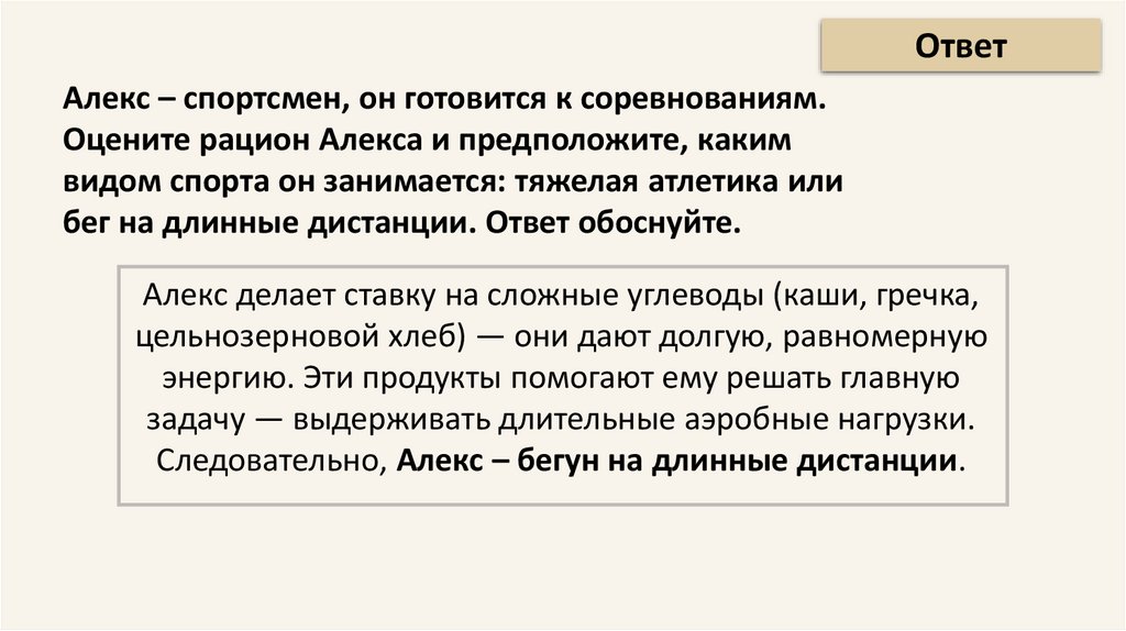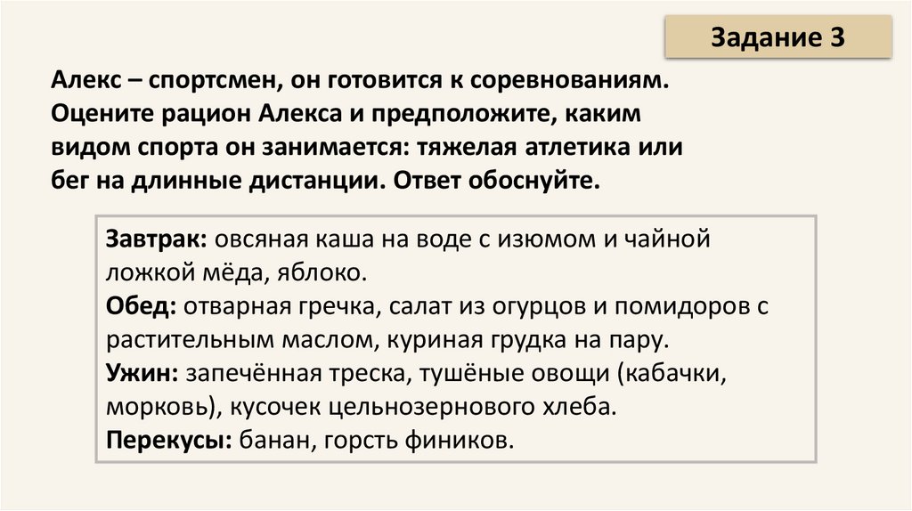 Задание 3Алекс – спортсмен, он готовится к соревнованиям.